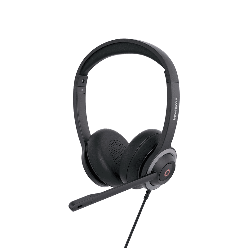 Para evitar interrupções externas, o headset tem um LED que fica vermelho quando o microfone estiver em posição de uso.