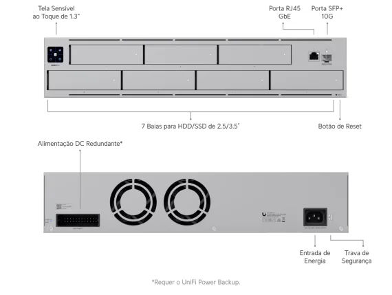Interface de Rede: (1) SFP+ 10G (10G/1G) (1) GbE RJ45 (1G/100M/10M)